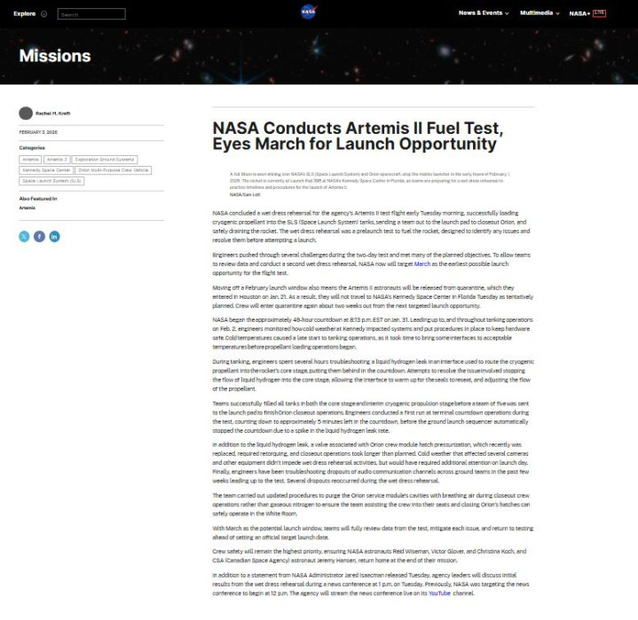当然,对于这一次发射前的演练,美国宇航局(NASA)也是多次说过了,在2-4月有多个发射窗口期,只是当下最为关键的点是什么?