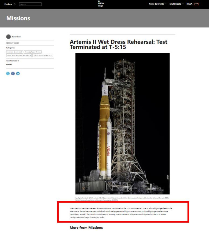 而这一次美国宇航局(NASA)在终止的公告之中也说明了,就是因为尾服务塔脐带处液氢泄漏而终止,在倒计时期间,该处曾出现过高浓度的液氢。