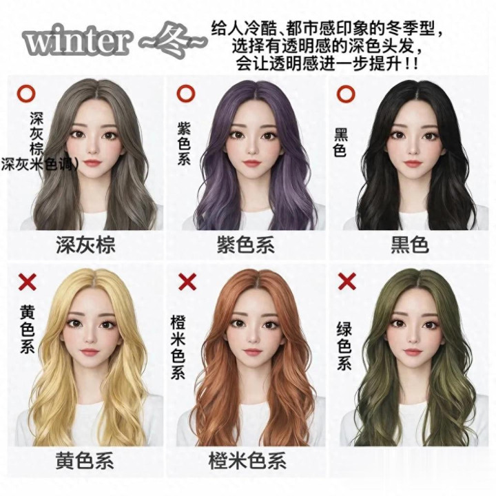 #冷皮冬季型染发 #冷皮适应的发色 #透明感深色头发 #冬季型发型攻略 #冬季型发色保举
