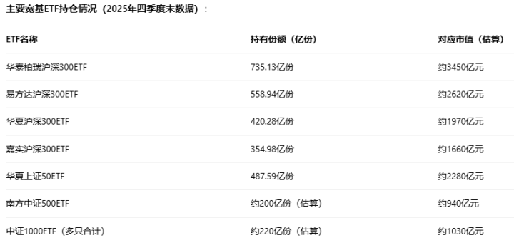 {jz:field.toptypename/}以汇金为代表的大户合手仓数据每半年才会在基金论说中裸露,最新一期2025年年报还莫得,因此咱们就暂且以2025年半年报约1.7万亿为参考吧。