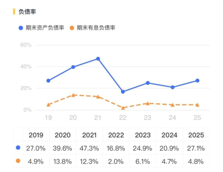 险些不借债:2025年末,公司金钱欠债率唯有27%,有息欠债率4.8%。换句话说,公司基本靠自有资金启动,没什么还债压力。