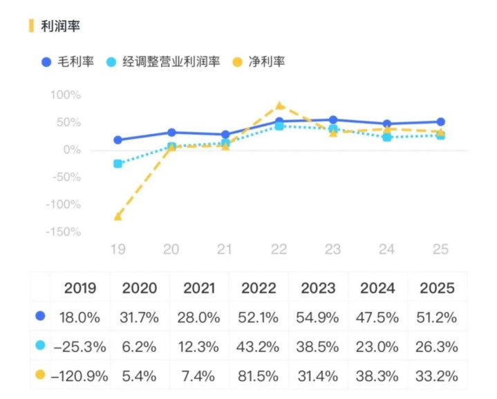 融捷股份的主要产物是锂精矿(占营收的86%),异常于锂盐的“原料”。由于公司我方领有矿山,老本相对固定,产物加价带来的收益险些一皆转机成了利润。2025年,公司举座毛利率高达51.2%,在锂电行业中遥遥当先。