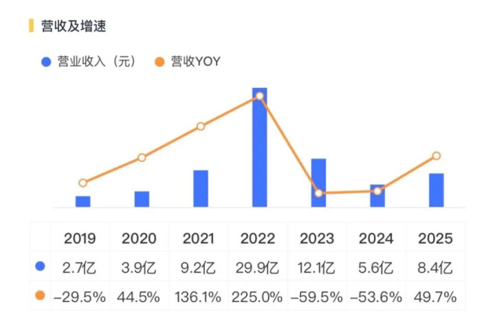 2025年,融捷股份的营收达到了8.4亿元,比上一年增长了近50%;净利润2.73亿元,增长跨越35%。而在2024年,这两项数据都是大幅下滑的。从低谷到反弹,变化主要来自两点: