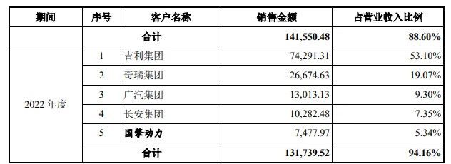 招股书显示,报告期内,丰沃股份前五大客户收入占比均超88%,正规澳门游戏官网其中吉利与奇瑞合计贡献近70%营收。