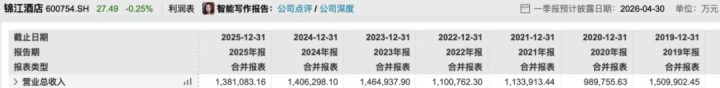但2024年至2025年,尽管文旅火爆,锦江货仓的事迹却绽放两年下滑,营收区别为140.63亿元、138.11亿元,同比区别减少5.86亿元、2.52亿元,降幅4%、1.79%;净利润为11.44亿元、9.89亿元,同比区别下滑10.4%、13.54%。