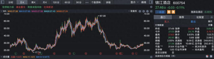 截止4月13日收盘,锦江货仓A股股价为27.46元/股,总市值292.81亿元。