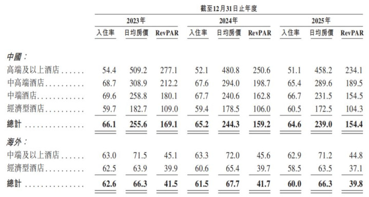 2025年,锦江货仓国内货仓板块日均房价为239元,较2023年着落16.6元,降幅6.49%;RevPAR为154.4元,较2023年着落14.7元,降幅8.69%。