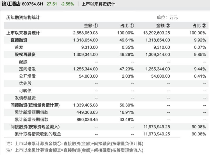 据Wind统计,A股上市以来,锦江货仓径直融资(首发、定向增发、公开增发)131.87亿元,障碍融资(按筹资现款流入)1197.39亿元,募资总数所有1329.26亿元。