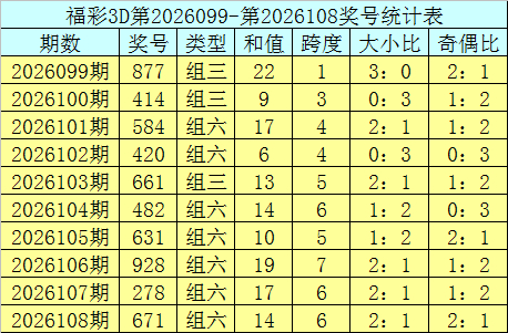 上期回来:福利彩票3D第2026108期奖号为671。