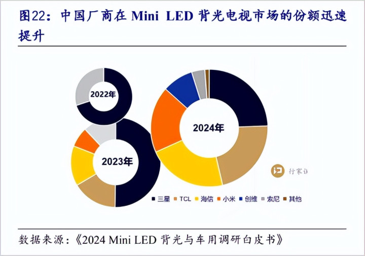 曾几何时,三星在Mini-LED电视阛阓领有齐备总揽力。而到2024年第四季度,三星在Mini-LED电视赛说念的排行已跌至大家第四,被海信、TCL、小米全面特出。2025前三季度,TCL Mini LED电视大家出货量达224万台,同比激增153.3%,出货量大家第一。