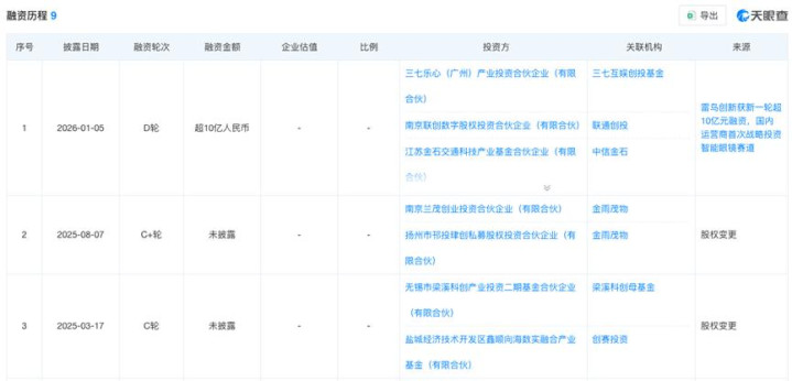在此配景下,手脚行业翘楚,雷鸟创新坚贞成为成本的骄子。天眼查自大,2021年开导以来,雷鸟创新共完成9轮融资,其中D轮融资完成于2026年1月5日,融资金额超10亿元。对比而言,主营互联网电视业务的雷鸟科技已开导约九年时辰,仅2017年2月和2019年1月拿到过两轮融资。