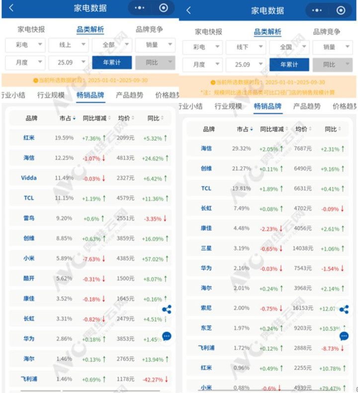 行业下行压力较大的配景下,雷鸟只可在市集和价钱之间二选一。奥维云网数据自大,2025年1-9月线上渠谈,雷鸟电视的销量份额为9.2%,虽同比上升0.6个百分点,但均价仅为2551元,同比着落3.35%。