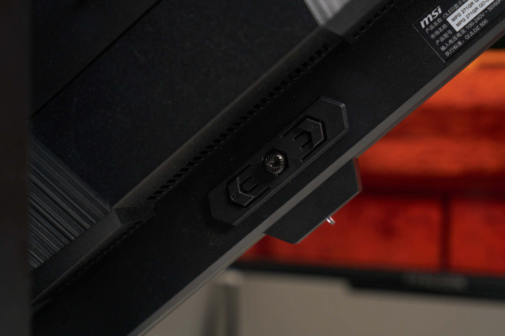 在背部想象上,微星 MPG 271QR QD-OLED X50 一样不竭了眷属化作风。背板选拔金属拉丝工艺打造,不仅带来细密且敷裕质感的触感,同期也能接济机身散热;左侧驻扎标龙盾符号看成品牌标识性元素,既强化了产物辨识度,也为从简的背部想象增添了一抹电竞属性。