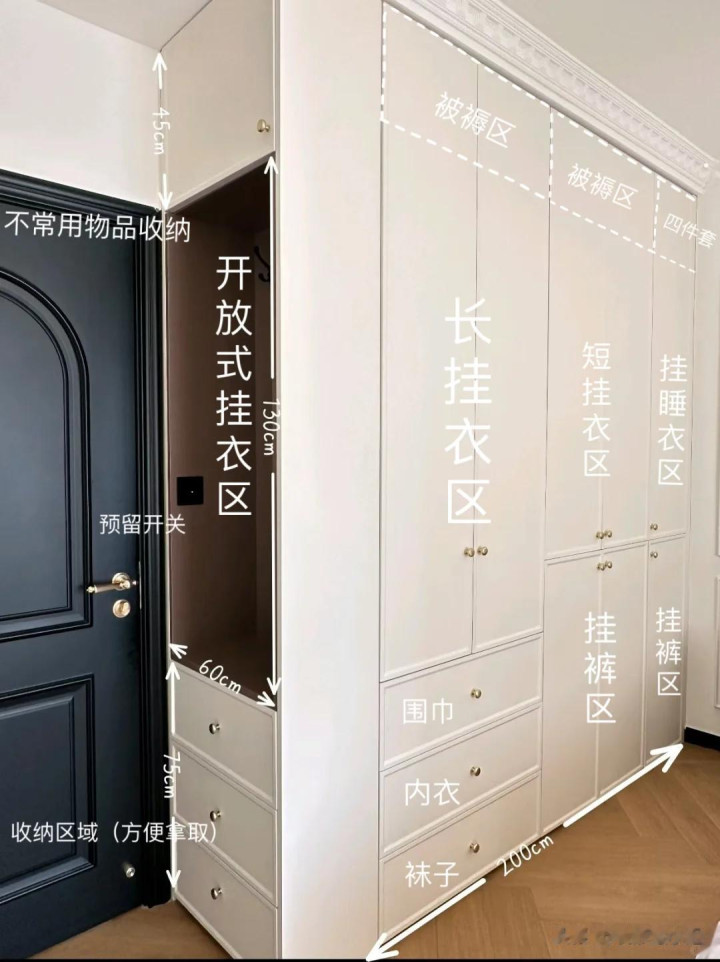 不妨在装修时,提前在家中的衣柜侧边作念盛开收纳的研究,即可满足普通关于次净衣物的收纳,不会让家中的次净衣物堆积的到处都是。