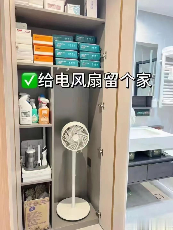 在研究家中,全屋收纳柜时,不妨在家中的阳台计齐总共家政柜,用来收纳家中的闲置电器,比如电电扇。
