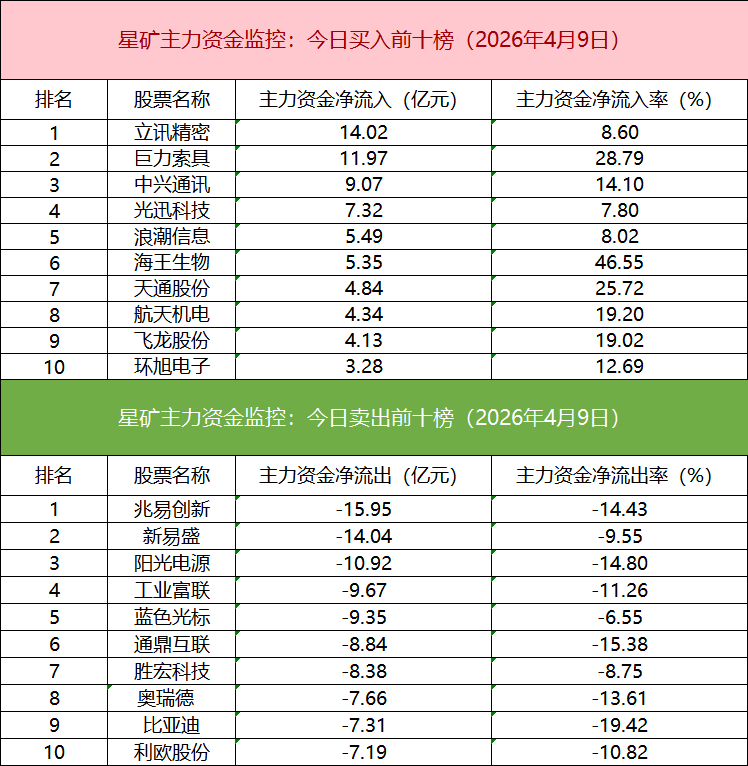 从个股主力资金监控数据来看,主力资金净流入前十的个股所属板块较为散布,立讯精密净流入居首。