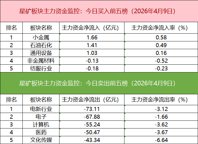 从主力板块资金监控数据来看,小金属板块主力资金净流入居首。