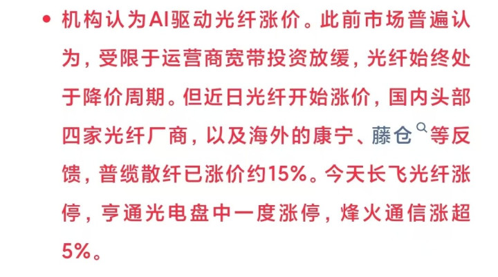 我早在12月份就提过光纤在涨价、有望迎来拐头,后面由于商业航天带动烽火通信等暴涨,盖过了光纤涨价的逻辑,昨晚康宁大单再次确认光纤景气度。