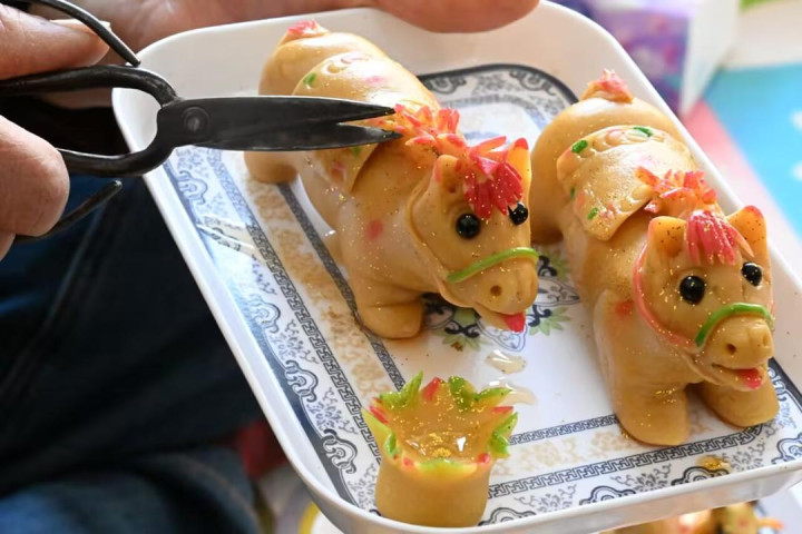 春节已过,元宵节将至。在即墨区田横镇一带,渔家东说念主用黄豆面握灯庆元宵的习俗已传承600余年。2月28日,宋玉芳盘腿坐于炕头,手中的豆面团仿佛有了人命,揉搓间便有了雏形。她用牙签、梳子、剪刀等简便器具局部加工,不片刻,涉笔成趣的动物造型便一气呵成。