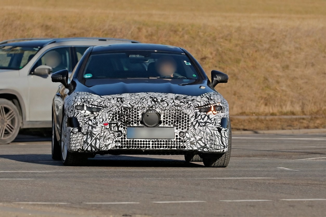 其实可以看到的是,尽管这是奔突CLE级的中期改款,整台测试车唯有车头被伪装车衣障翳了起来,其余策画均保抓现金造型。但即等于这么,我照旧第一时代醒目到了在车头被点亮的全新日行灯,除了灯组尖端的光带变得更修长了以外,它的遐迩光灯之间还布局了三叉星造型的日行+转向灯,这也曾成为了现阶段奔突的中枢绮丽,即等于进入到MB.EA平台分娩的纯电动产物也在陆续这种绮丽。你还真别说,这三叉星点亮之后,就算是夜间行车,那我们也一眼就能从车流中识别出奔突来。