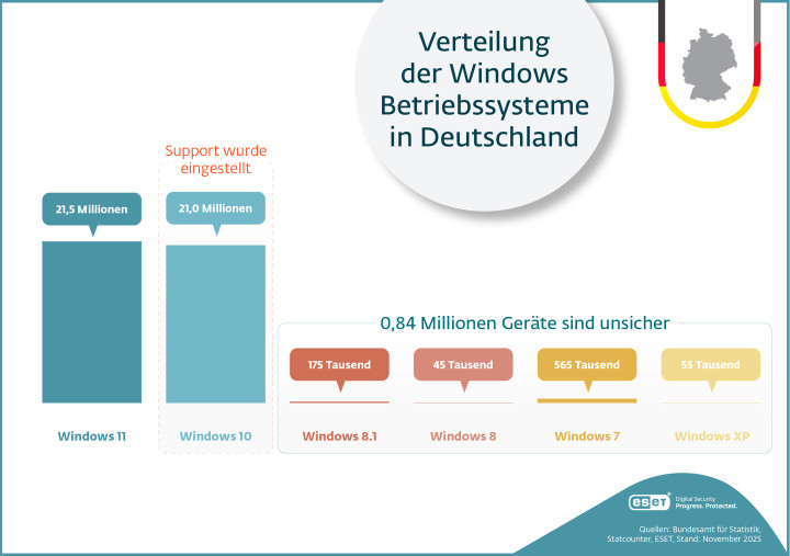 IT之家1月27日音问,积贮安全公司ESET昨日(1月26日)发布博文,报说念称Windows10系统固然已于2025年10月住手支柱,但在德国阛阓,仍有约2100万台个东说念主电脑(占比48%)效力该系统。