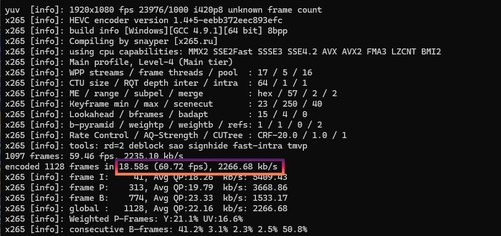 再来望望视频编码,这是英特尔酷睿惩处器一直以来的矍铄。x264Benchmark编码2500帧耗时仅为24秒,帧速率104.86fps;x265Benchmark编码1128帧,耗时仅18.58秒,帧速率60.72fps,速率极快,是当前编码性能最强的移动级惩处器。
