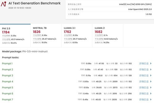 此外,上一代核显受限于算力不及和显存不及的问题,无法完成ULProcyon的AI大谈话模子生成测试,而酷睿UltraX9388H不仅能够胜利完成,而况在PHI3.5、MISTRAL7B、LLAMA3.1、LLAMA2四款大谈话模子测试中,生成速率阔别达到了43.3tokens/s、28.47tokens/s、25.17tokens/s以及14.02tokens/s。