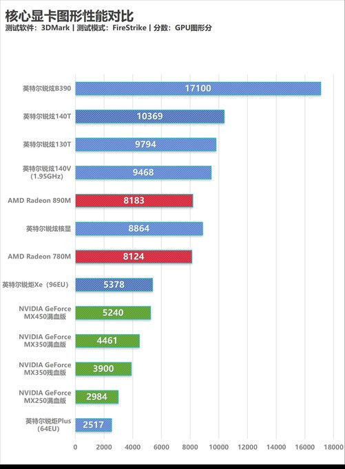下图是3DMarkFireStrike花式历代核显的测试成绩,人人可以此为参考对锐炫B390的性能有一个更为直不雅的了解: