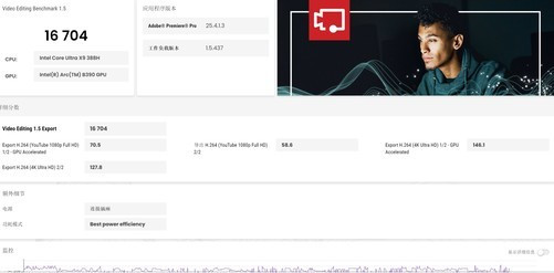 搭载酷睿UltraX9388H平台的联思小新Pro16GT酷睿版在常用基本功能,包含Web浏览、视频会议、哄骗方法启动等得分为11441分,诠释其完成这些基础办公任务莫得任何问题;分娩力神志测试中得分高达23005分,标明其领有非凡的电子表格、文档责任意能;数位内容创作评分高达14753分,诠释其能够相称高效地完成图片、视频编著、图形渲染等责任;游戏性能评高达11916分,游戏体验出色。详尽得分11439分,是当前浮滑本居品中,PCMark10E花式得分最高的一款,而且四项测试分数均过万,可见酷睿UltraX9388H是尽头齐全的一款移动端惩处器平台。