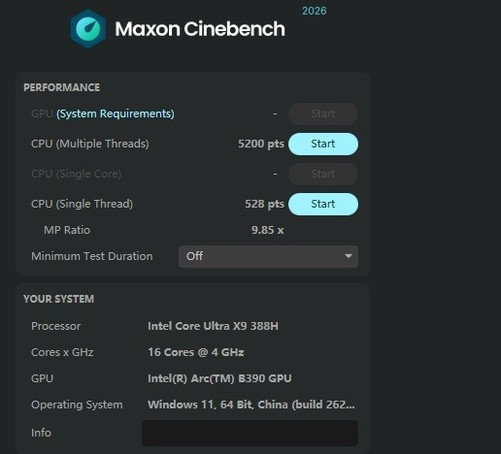 在单核和多核性能方面,咱们主要参考CINEBENCH2024的测试收尾。但是R23和最新的2026的测试成绩不异也可以行动参考。在CINEBENCH2024测试范例下,酷睿UltraX9388H惩处器单核得分达到了132,多核得分达到了1329,进展出色。另外皮最新的2026测试范例下,这颗惩处器单核得分528,多核得分5200,后续咱们也会不竭引入更多惩处器的CINEBENCH2026测试,方便人人在新的测试范例下对惩处器性能作出判断。