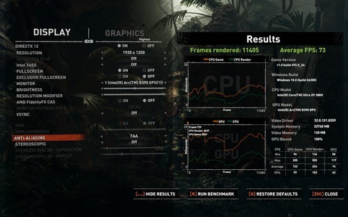 另外其实用锐炫B390玩游戏的话,起码在1920×1200分辨率环境下,无谓过于保守地去开低画质,咱们将画质调度到超高,也即是仅次于影视级画质的二档高画质,锐炫B390运行《黑外传:悟空》的平均帧率都可以达到73fps,完万能够满足动作3A游戏的畅达运行需求。而且放大图片可以看到,95%帧率其实是高于59fps的,画面畅达度极其富厚,不会出现瞬时大幅掉帧导致的磨叽或卡顿。