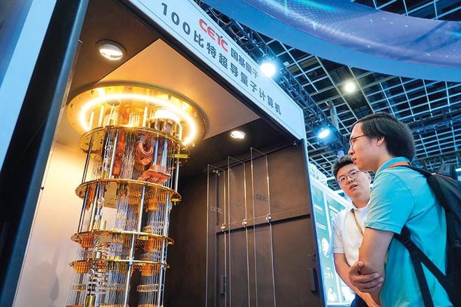 在南京举办的2025江苏产学研合作对接大会上,使命主谈主员向搭客教诲100比特超导量子经营机(2025年9月11日摄)新华社发(刘臻睿摄)