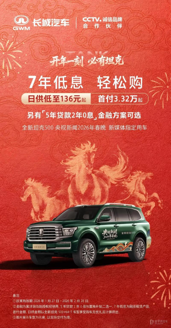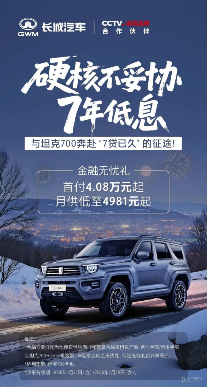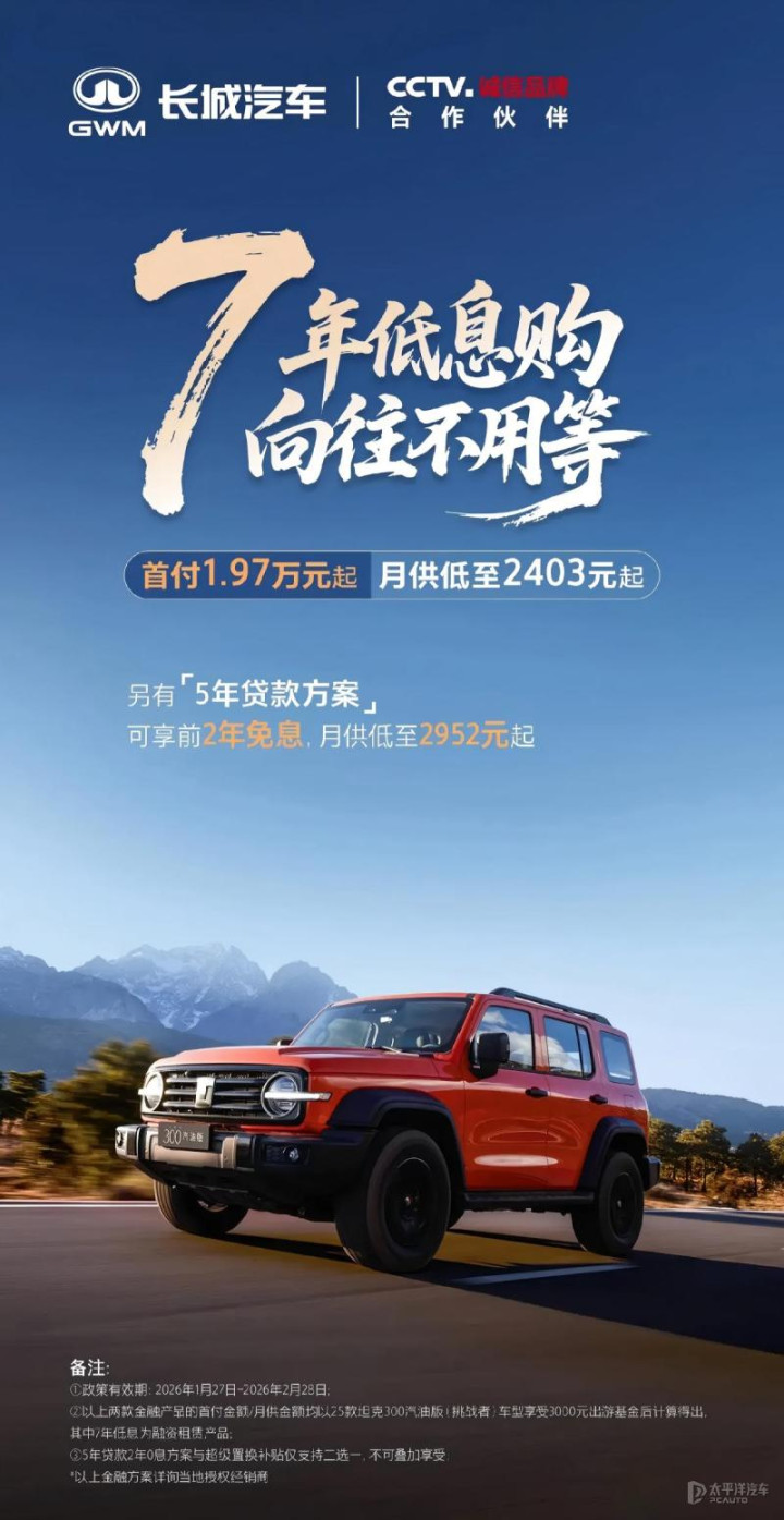 同时推出的还有坦克300/400/500专属5年贷款有缱绻,可提现游戏平台可享受前2年免息优惠。这一系列金融策略将于2026年1月27日至2026年2月28日历间有用。