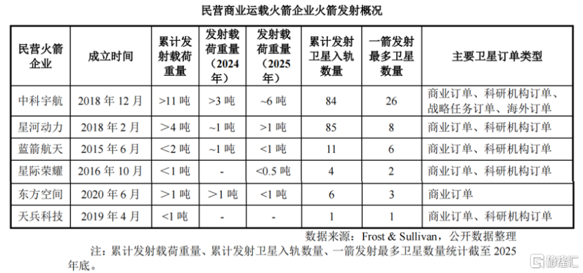 凭证Frost&Sullivan发布数据,中科宇航、银河能源、蓝箭航天、星际荣耀、东方空间、天兵科技等中国民营生意输送火箭代表企业均已已矣到手放射入轨。