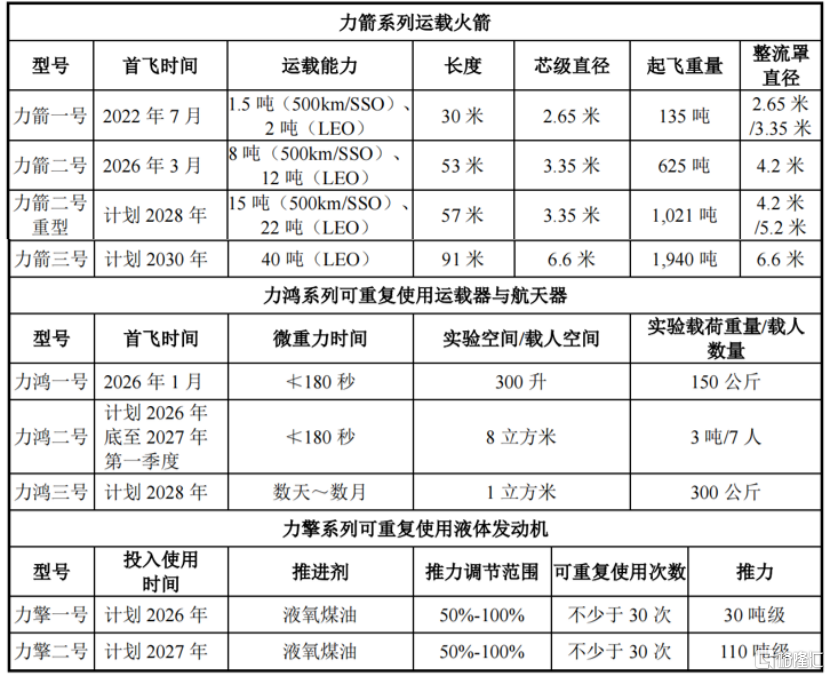 生意输送火箭是提供放射处事的载体。公司的居品包括力箭系列输送火箭、力鸿系列可相易使用输送器与航天器、力擎系列可相易使用液体发动机等。各型谱及主要参数如下: