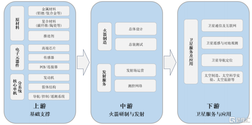 输送火箭制造位于生意航天产业链的核心,其核心职能是将上游恒河沙数的原材料、元器件和分系统集成为一个大概可靠运行的举座。