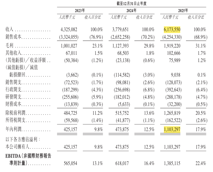 2023年到2025年,大金重工营收从43.25亿元波动到61.74亿元,但利润端变化更彰着。2025年归母净利润11.03亿元,同比增长超130%,净利率从9.8%升至17.9%。