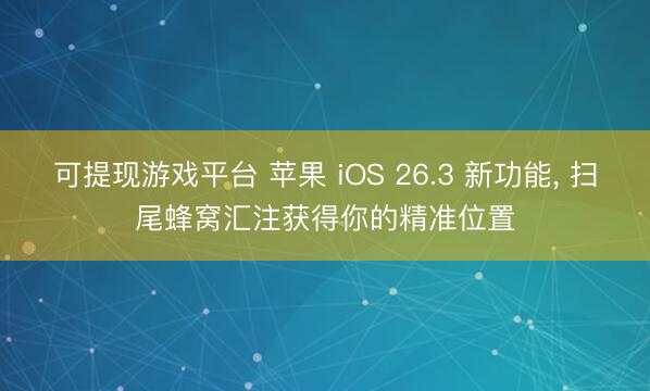 IT之家1月27日音书,苹果公司昨日(1月26日)更新因循文档,留意解读了iOS26.3中新增的“扫尾蜂窝汇注获得的精准...