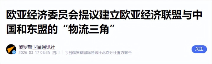 最近莫斯科又抛出一个新词儿,在首届中俄物流买卖论坛上,欧亚经济委员会认真动力与基建的官员科若舍夫公开提议要搞“中俄东盟物流大三角”。