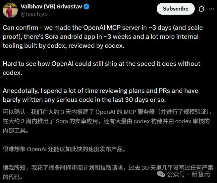 要是莫得Codex的话,很难设想OpenAI能以如斯惊东谈主的速率发布产物。