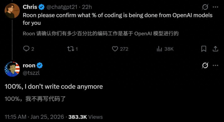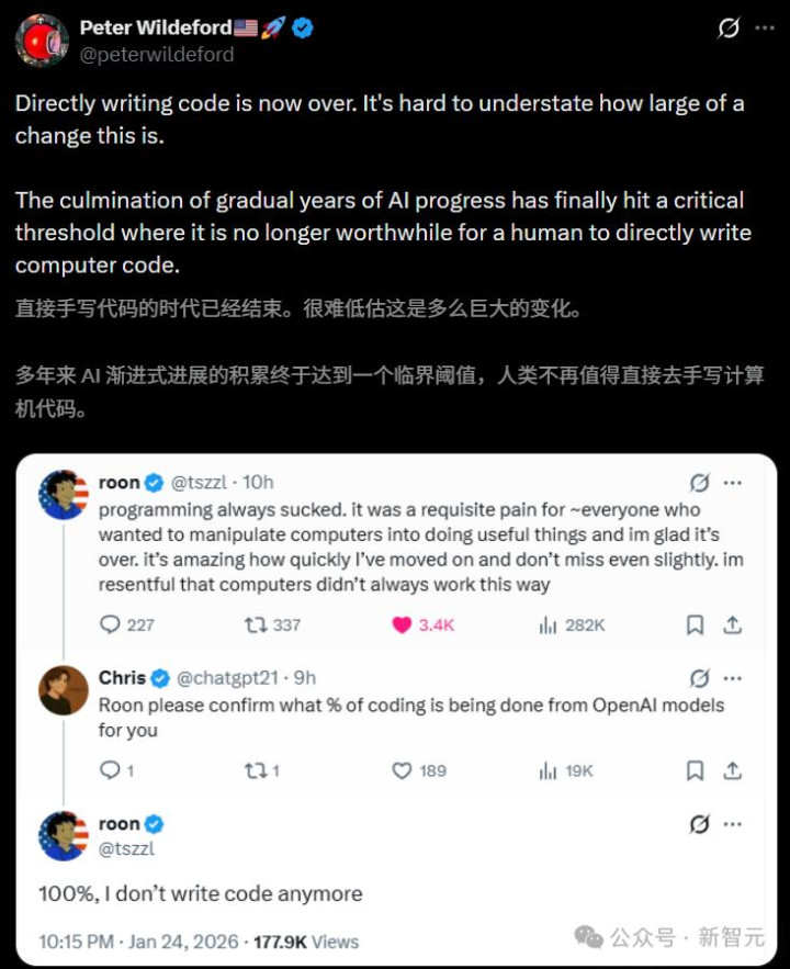 诚然OpenAI的商酌员和Claude Code的创造者皆在声称AI包办了100%的代码,但请记取——