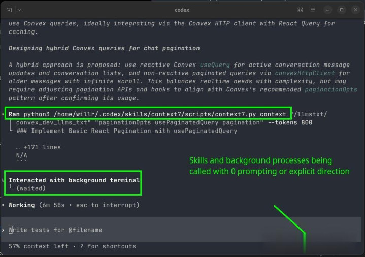 在启齿问问题之前,Codex会先在你的代码库中进行2次以上的针对性搜索,检查设置、Schema结构、才略进口等。