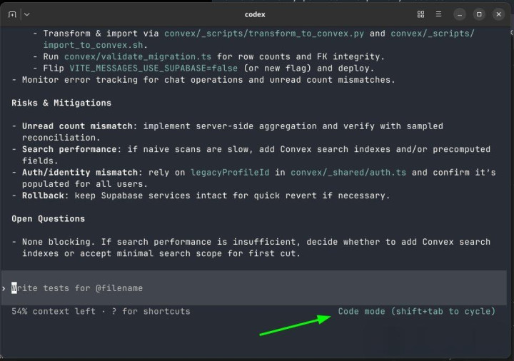 Code模式是Codex的默许体验,它的责任方式和其他AI智能体相同。